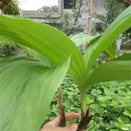主要特征是:叶圆盾形,根茎较细,叶柄细长,棕褐色,可攀援。不耐寒,喜温暖湿润,越冬温度10℃以上。花生于叶腋,有黄、红、赭、乳白等色,不整齐。