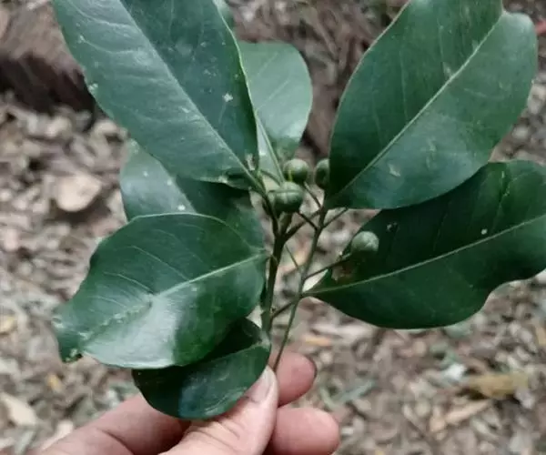 山油柑,别名:降真香、石苓舅、山柑、砂糖木,拉丁文名:Acronychia pedunculata (L.) Miq. 芸香科、山油柑属常绿乔木,树皮灰白色至灰黄色,平滑,不开裂,内皮淡黄色,剥开时有柑橘叶香气,当年生枝通常中空。叶有时呈略不整齐对生,单小叶。叶片椭圆形至长圆形,或倒卵形至倒卵状椭圆形, 分布于广东、广西、云南;印度支那,缅甸,印度,马来西亚,菲律宾。生常绿阔叶林中。根、叶、果用作中草药,有柑橘叶香气。化气、活血、去瘀、消肿、止痛、治支气管炎、感冒、咳嗽、心气痛、疝气痛、跌打肿痛、消化不良。据实脸,对于流感病毒(仙台株)有抑制作用。