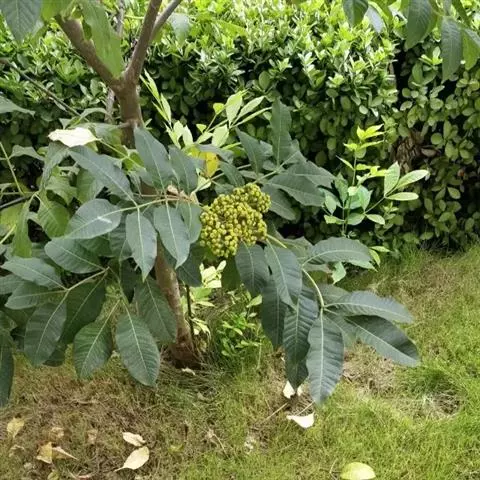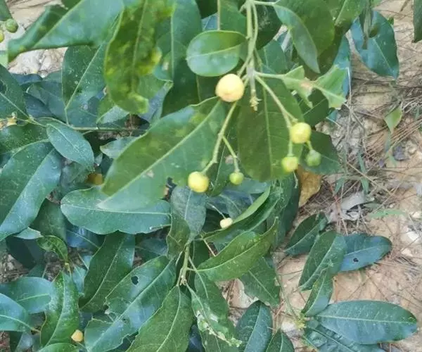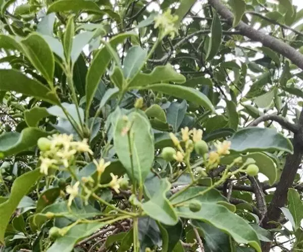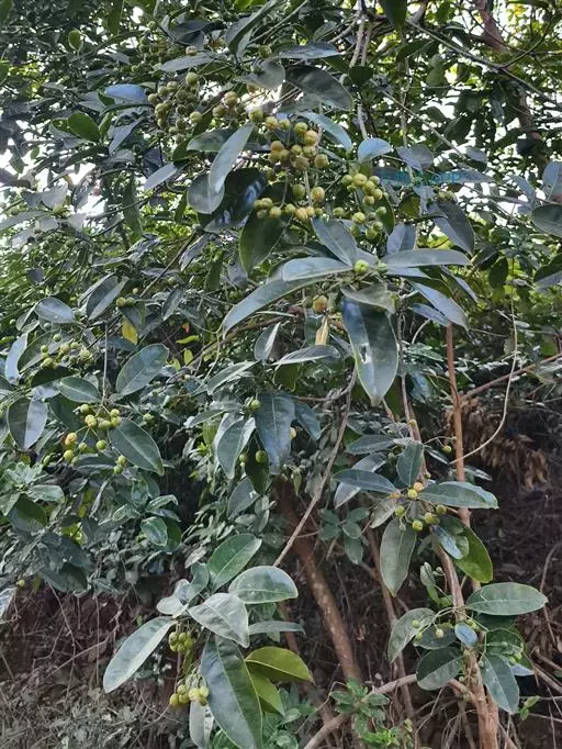 树高5-15米。树皮灰白色至灰黄色,平滑,不开裂,内皮淡黄色,剥开时有柑 山油柑 橘叶香气,当年生枝通常中空。叶有时呈略不整齐对生,单小叶。叶片椭圆形至长圆形,或倒卵形至倒卵状椭圆形,长7-18厘米,宽3.5-7厘米,或有较小的,全缘;叶柄长1-2厘米,基部略增大呈叶枕状。花两性,黄白色,径1.2-1.6厘米;花瓣狭长椭圆形,花开放初期,花瓣的两侧边缘及顶端略向内卷,盛花时则向背面反卷且略下垂,内面被毛、子房被疏或密毛,极少无毛。果序下垂,果淡黄色,半透明,近圆球形而略有棱角,径1-1.5厘米,顶部平坦,中央微凹陷,有4条浅沟纹,富含水分,味清甜,有小核4个,每核有1种子;种子倒卵形,长4-5毫米,厚2-3毫米,种皮褐黑色、骨质,胚乳小。花期4-8月,果期8-12月。