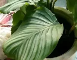 孔雀竹芋 孔雀竹芋喜湿润的环境, 在生长季节应给予充足的水分。若冬季低温休眠,则要控制浇水, 保持盆土不干燥即可,翌春抽出新叶后。再逐渐正常浇水。