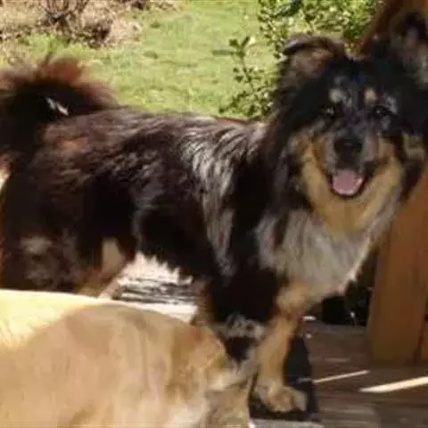 尾巴:位置高,粗,快乐地卷曲,举起过背,下垂时尖部几乎触及飞节。