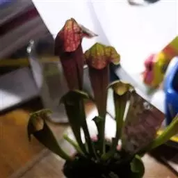 瓶子从在开花末期开始生长,一直到晚秋,在晚秋的时候,瓶子开始凋 鹦鹉瓶子草2 谢,植株长出不具补虫功能的剑形叶(或称叶状柄)。由于冬季的昆虫减少,天气转冷,也降低了植物的新陈代谢和其他功能,此时把能量花在长补虫叶很不划算,剑形叶是比较经济的选择。