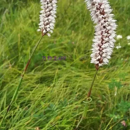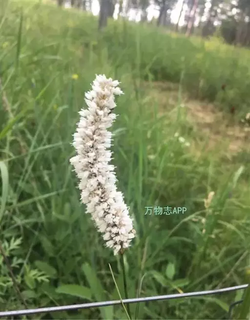 拳参,又名:拳蓼,拉丁学名:Polygonum bistorta L. 属蓼目,蓼科多年生草本,高50~90厘米。根茎肥厚扭曲,外皮紫红色。茎直立,单一或数茎丛生,不分枝。根生叶丛生,有长柄;叶片椭圆形至卵状披针形,长12~18厘米,宽2.5~6厘米,先端短尖或钝,基部心形或圆形。下延成翅状,边缘外卷,无毛,或有时下面疏被柔毛。茎生叶较小,近乎无柄,叶片披针形至线形;托叶鞘膜质,管状,长达3厘米。生山坡草地、山顶草甸,海拔800-3000米。分布于中国、日本、蒙古、哈萨克斯坦、俄罗斯。