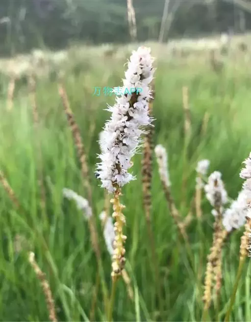 总状花序呈穗状, 拳参 顶生,长4-9厘米,直径0.8-1.2厘米,紧密;苞片卵形,顶端渐尖,膜质,淡褐色,中脉明显,每苞片内含3-4朵花;花梗细弱,开展,长5-7毫米,比苞片长;花被5深裂,白色或淡红色,花被片椭圆形,长2-3毫米;雄蕊8,花柱3,柱头头状。