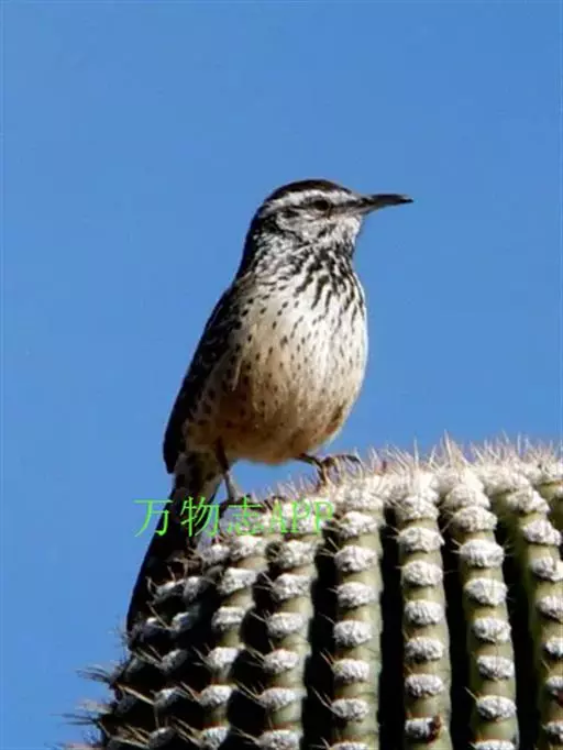 1、棕曲嘴鹪鹩下加利福尼亚州亚种(学名:Campylorhynchus brunneicapillus affinis)