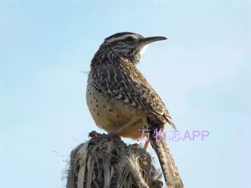 7、棕曲嘴鹪鹩美国西南部亚种(学名:Campylorhynchus brunneicapillus sandiegense)