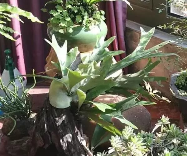 鹿角蕨是观赏蕨中姿态最奇特的一类,属附生性观赏蕨。鹿角蕨可布置于公园、植物园、商店、居室、窗台等地方的装饰,贴生于古老枯木或装饰于吊盆,作悬吊式或镶挂式布置,是室内立体绿化的好材料。
