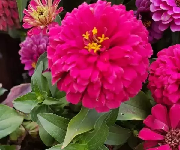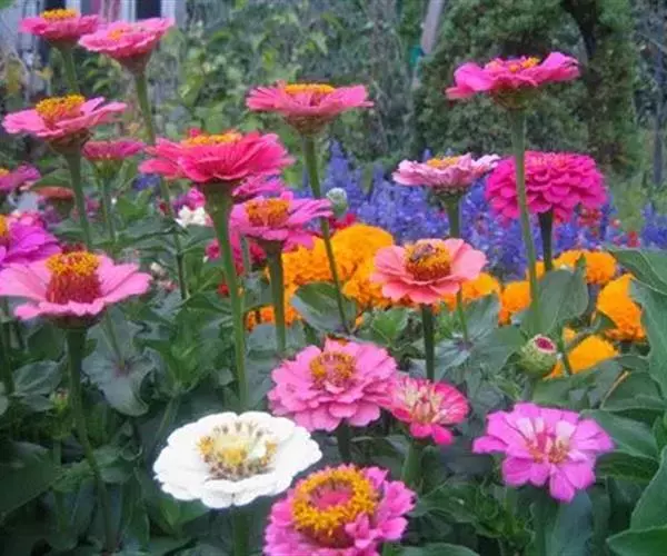 百日草花的颜色非常丰富,作盆栽欣赏,观其花朵,一朵更比一朵高,会激发人们的上进心。