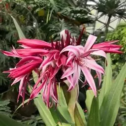 红花文殊兰是石蒜科文殊兰属年生常绿草本植物,高可60-100厘米。叶片大,宽带形或箭形先端尖,…