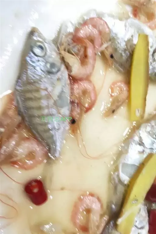 ①鲜花入杯中倒扣在盘中间,鱿鱼、海参、虾肉、鲜贝、熟鸡块、鱼片、冬笋用沸水焯一下捞出,码放在鲜花周围;