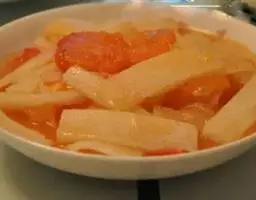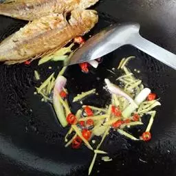 ②汤勺内放入高汤、盐、味精、胡椒粉、姜末、料酒烧开淋入水淀粉勾芡浇在菜上即可。