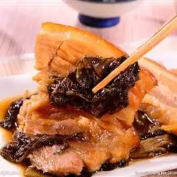 梅菜扣肉,汉族传统名菜,属客家菜 。制作材料有五花肉、梅菜、葱白、姜片等。