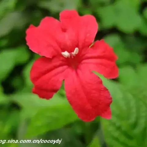 红花山牵牛是爵床科,山牵牛属植物。茎及枝条具明显或不太明显的9棱,初被短柔毛,后仅节处被毛,余无毛…