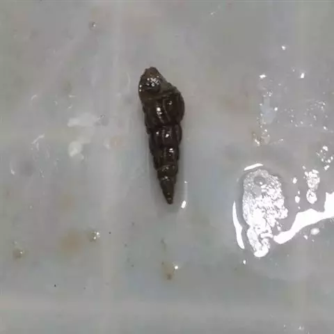具壳颜色多变,有黑褐、淡褐、灰白色,螺塔的开口大、尾端尖,贝壳面密布著波纹状的螺纹,爬行时可见完整的眼、口、足、触角。壳长约2cm,圆锥形,螺塔7层 、壳薄,缝合深,螺肋密且粗,外型薄,内唇不发达,轴唇有白色滑层。