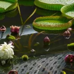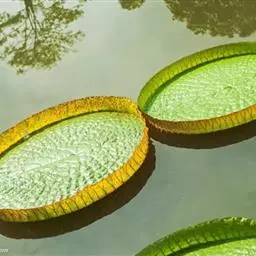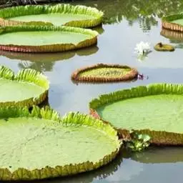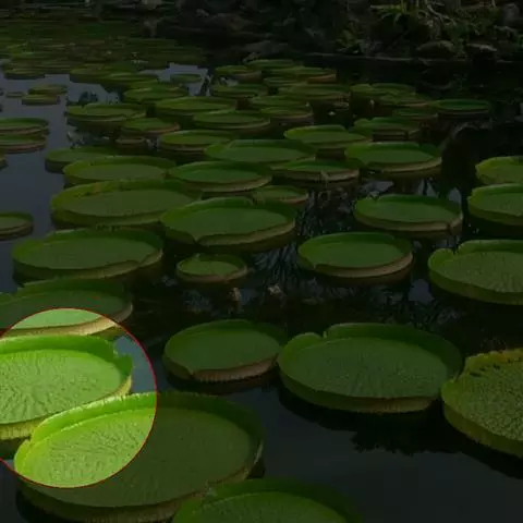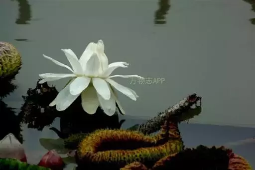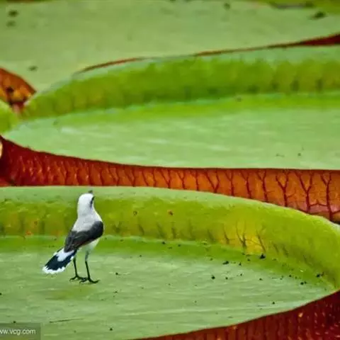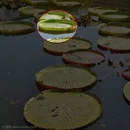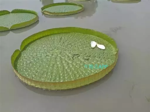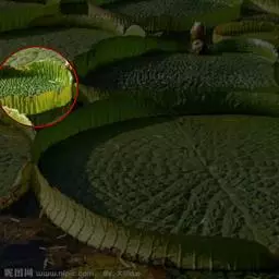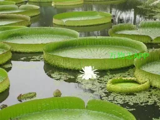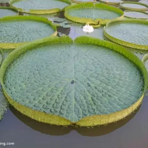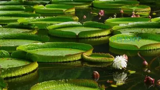 属睡莲科多年生或一年生大型浮叶草本。有直立的根状短茎和发达的不定须根,白色。果实成熟时,内含五六百粒种子,大小形状似豌豆,含有丰富淀粉,可食用,南美洲人因此称之为“水玉米”。王莲是水生有花植物中叶片最大的植物,其初生叶呈针状,长到2~3片叶呈矛状,至4~5片叶时呈戟形,长出6~10片叶时呈椭圆形至圆形,到11片叶后叶缘上翘呈盘状,叶缘直立,叶片圆形,像圆盘浮在水面,直径可达2米以上,叶面光滑,绿色略带微红,有皱褶,背面紫红色,叶柄绿色,长2~4m,叶子背面和叶柄有许多坚硬的剌,叶脉为放射网状。
