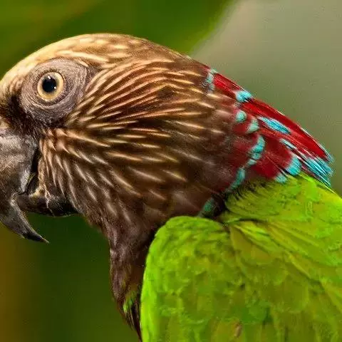 鹰头鹦鹉:鹰头鹦鹉体长35厘米,体重190-277克。额头和顶冠具柔和的白色,眼先深褐色,…