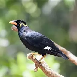 黑冠椋鸟:中等体型的椋鸟,体长21厘米。雄鸟前头为黑色并具金属光泽;头顶、颈项和羽冠亦为黑色;翅及翅上覆羽黑色;尾羽褐色,具白色端斑;上体灰色;下体淡黄褐色。雌鸟形态与雄鸟相似,但羽冠较雄鸟为短。虹膜蓝白或乳黄色;嘴峰铅绿色;跗蹠及爪柠檬黄色。头具黑色羽冠,与其他椋鸟易于区别。主要栖息于开阔落叶阔叶林和灌木林中以及多营巢于树洞中或其他洞穴内。属群鸟共栖。常4-8只结小群活动。鸣声清脆响亮。食物有果实和浆果,偶食花蜜和小型昆虫。分布于印度、中国云南耿马。常见于印度城镇、村庄及铁路沿线。偶见于中国云南西南部和西藏东南部。