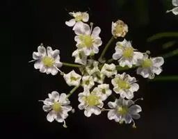 复伞形花序顶生或与叶对生,花序梗长短不一,有时缺少,通常无总苞片和小总苞片;伞辐细弱,3-16,长0.5-2.5厘米;小伞形花序有花7-29,花柄长1-1.5毫米萼齿小或不明显;花瓣白色或黄绿色,圆卵形,长约1毫米,宽0.8毫米,顶端有内折的小舌片;花丝与花瓣等长或稍长于花瓣,花药卵圆形,长约0.4毫米;花柱基扁压,花柱幼时极短,成熟时长约0.2毫米,向外反曲。分生果圆形或长椭圆形,长约1.5毫米,宽1.5-2毫米,果棱尖锐,合生面略收缩;每棱槽内有油管1,合生面油管2,胚乳腹面平直。花期4-7月。