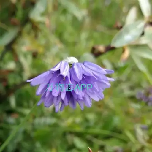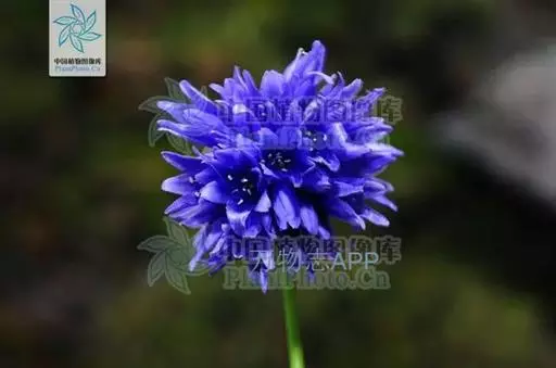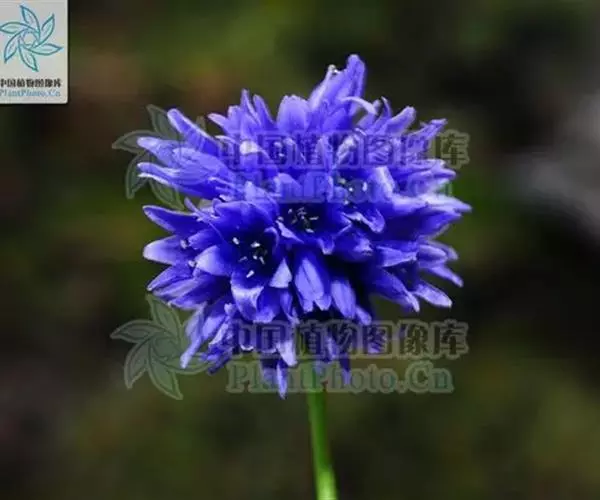 鳞茎数枚聚生,圆柱状,粗0.3-0.5厘米;鳞茎外皮暗褐色,破裂成纤维状,下部近网状,稀条状破裂。叶狭条形,扁平,比花葶短,宽2-5毫米。花葶圆柱状,高15-40厘米,有时矮到5厘米,下部被叶鞘;总苞单侧开裂,早落;伞形花序半球状,具多而密集的花;小花梗近等长,比花被片短或与其等长,基部无小苞片;花钟状,天蓝色;花被片卵形或卵状矩圆形,先端钝,长6-10毫米,宽3-4.5毫米,内轮的边缘常具1至数枚疏离的不规则小齿,且常比外轮的稍长而宽;花丝等长,为花被片长度的1/2-2/3,基部合生并与花被片贴生,合生部分高约1毫米,内轮的基部扩大,有时每侧各具1齿,外轮的基部也常扩大,有时每侧亦各具1齿;子房近球状,腹缝线基部具明显的有窄帘的凹陷蜜穴;花柱比子房短或近等长。花果期7-9月。 该种以条形、扁平的叶,天蓝色的花,花丝比花被片短,花被片卵形至卵状矩圆形,内轮边缘常具小齿而易被识别。