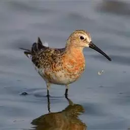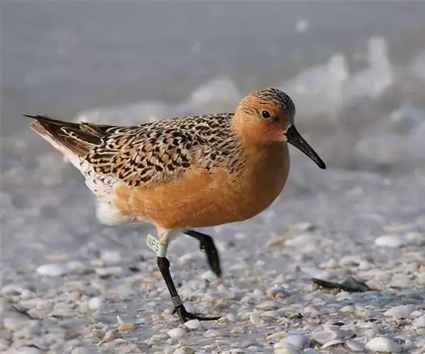 红腹滨鹬(学名:Calidris canutus),是鹬科、滨鹬属的小型涉禽,体长23-25厘米,嘴较短而直、黑色,脚亦甚短、绿色。体较粗胖。夏季上体灰褐色具黑色中央纹,背具棕栗色和白色斑纹和羽缘,头侧和整个下体栗红色。冬季棕红色消失,上体灰色,头具细窄的黑色纵纹,背具细的黑色羽干纹和白色羽缘。下体白色,颊至胸具灰褐色纵纹。