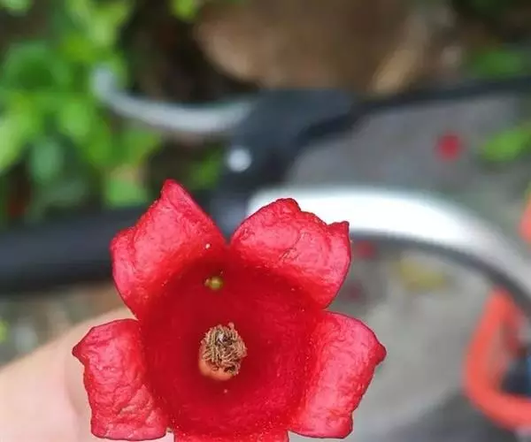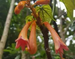 花冠筒细长,漏斗状,橙红色至鲜红色,筒部为花萼长的3倍,约6-9厘米,直径约4厘米。蒴果长圆柱形,长8-12厘米,顶端具喙尖,沿缝线具龙骨状突起,粗约2毫米,具柄,硬壳质。