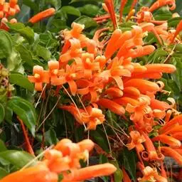 炮仗藤 Miers)紫葳科炮仗藤属藤本植物。小枝顶端有丝状卷须;叶对生,卵形;花萼钟状,橙红色,…
