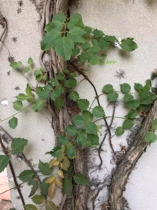 藤本,具气生根,长达10米。小叶9-11枚,椭圆形至卵状椭圆形,长3.5-6.5厘米,宽2-4厘米,顶端尾状渐尖,基部楔形,边缘具齿,上面深绿色,下面淡绿色,被毛,至少沿中肋被短柔毛。花萼钟状,长约2厘米,口部直径约1厘米,5浅裂至萼筒的1/3处,裂片齿卵状三角形,外向微卷,无凸起的纵肋。