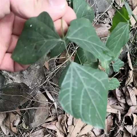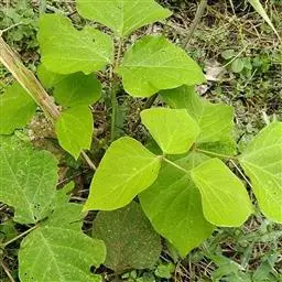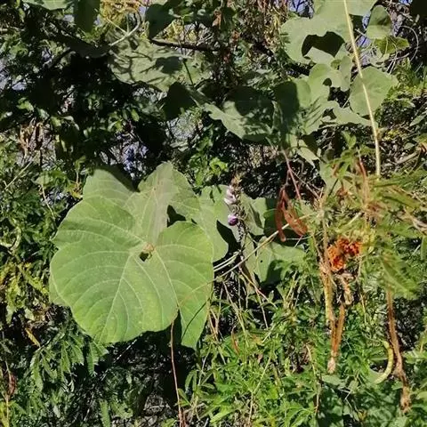 藤本;块根肥厚;各部有黄色长硬毛。小叶3,顶生小叶菱状卵形,长5.5-19厘米,宽4.5-18厘米,先端渐尖,基部圆形,有时浅裂,下面有粉箱,两面有毛,侧生小叶宽卵形,有时有裂片,基部斜形;托叶盾形,小托叶针状。