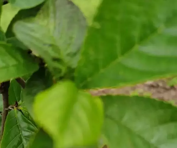 是病原真菌引起的。初期叶片出现褐色小斑,周围有紫红色晕圈,斑上可见黑色霉状物。随着气温的上升,有时数个病斑相连,最后叶片焦枯脱落。该病原菌生长最适宜的温度范围为25℃至30℃,孢子萌发适温18℃至27℃,在温度合适且湿度大的情况下,孢子几小时即可萌发。本地区现已进入雨季,有植株栽植密,通风透光差,株间形成了一个相对稳定的高湿、温度适宜的环境,对病菌孢子的萌发和侵入非常有利,且病菌可反复侵染,不加以重视,可能会使病害大发生。