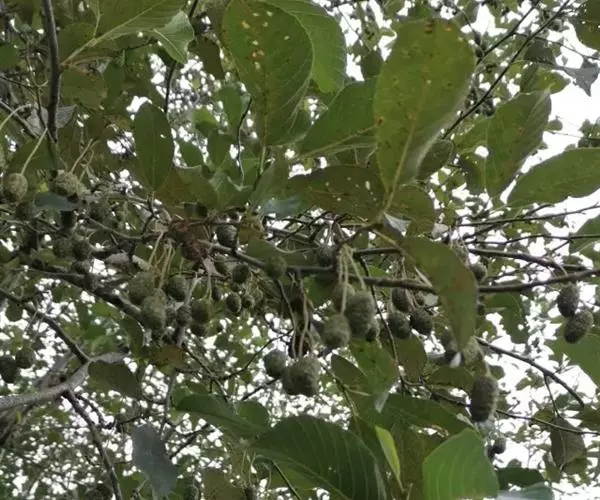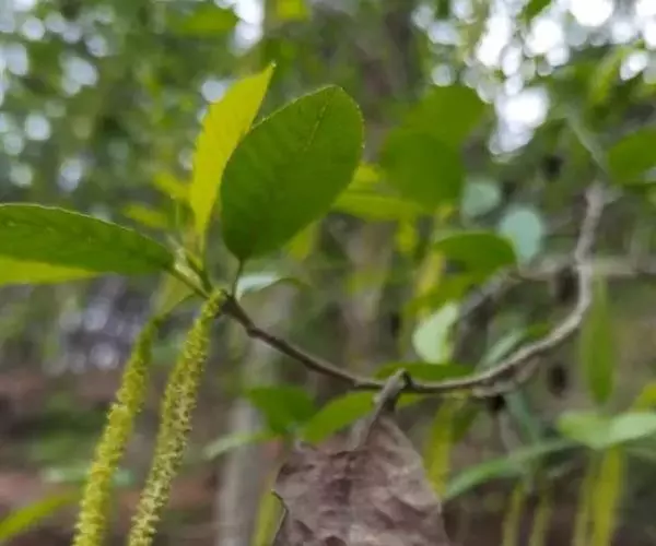 雄花序单生,长3-4厘米。果序单生于叶腋,矩圆形,长1-3.5厘 米,直径5-20毫米;序梗细瘦,柔软,下垂,长4-8厘米,无毛,很少于幼时被短柔毛;果 苞木质,长4-5毫米,顶端具5枚浅裂片。小坚果卵形,长约3毫米,膜质翅宽仅为果的 1/2。 [1-2]