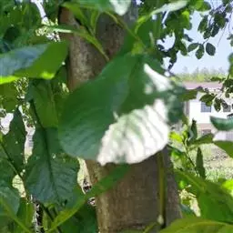 乔木,高可达30-40米;树皮灰色,平滑;枝条灰色或灰褐色,无毛;小枝褐色,无毛或幼时被淡褐色短柔毛;芽具柄,有2枚芽鳞。叶倒卵形、倒卵状矩圆形、倒披针形或矩圆 形,长4-14厘米,宽2.5-8厘米,顶端骤尖或锐尖,基部楔形或微圆,边缘具几不明显而 稀疏的钝齿,上面疏生腺点,幼时疏被长柔毛,下面密生腺点,几无毛,很少于幼时密被淡 黄色短柔毛,脉腋间有时具簇生的髯毛,侧脉8-10对;叶柄长1-2厘米,无毛,很少于幼 时具淡黄色短柔毛。
