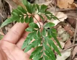 植株高50-70厘米。根状茎短而直立或斜升,粗约1厘米,先端被黑褐色鳞片。叶簇生,二型或近二型;柄长30-45厘米(不育叶的柄较短),基部粗约2毫米,禾秆色,有时带棕色,偶为栗色,表面平滑;叶片卵圆形,长25-30厘米,宽15-20厘米,一回羽状;不育叶的羽片(2)3-5对,10-18(24)厘米,宽1-1.5(2)厘米,先端渐尖,基部阔楔形,叶缘有软骨质的边并有锯齿,锯齿往往粗而尖,也有时具细锯齿;能育叶的羽片3-5(8)对,对生或向上渐为互生,斜向上,基部一对有短柄并为二叉,偶有三叉或单一,向上的无柄,线形(或第二对也往往二叉),长12-25厘米,宽5-12毫米,先端渐尖并有锐锯齿,基部阔楔形,顶生三叉羽片的基部不下延或下延。主脉下面强度隆起,禾秆色,光滑;侧脉两面均明显,稀疏,斜展,单一或从基部分叉。叶干后纸质,绿色或灰绿色,无毛;叶轴禾秆色,表面平滑。