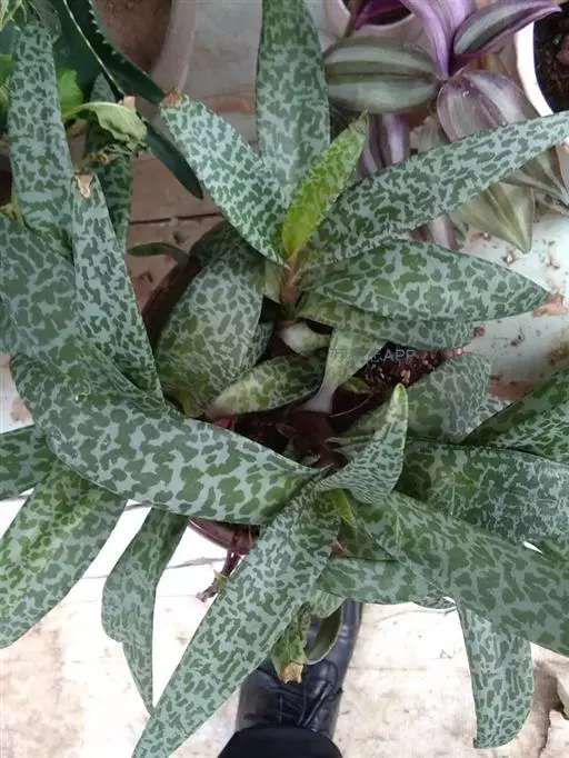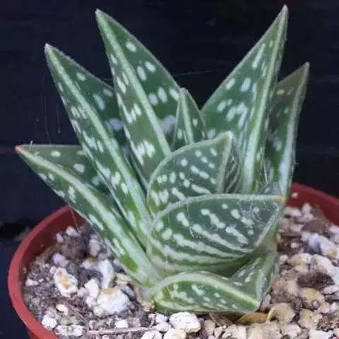 科名:百合科 植物特性:多年生草本植物,株高约5~30公分。叶:披针形,肉质状,先端锐尖,叶面灰绿色,散布浓绿色油渍般斑点。