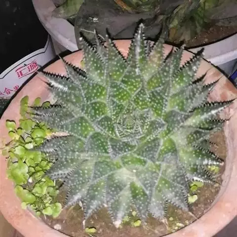 琉璃姬孔雀又名羽生锦,是阿福花科芦荟属的多年生植物,多肉植物。分布于非洲的马达加斯加。肉质叶密集丛…