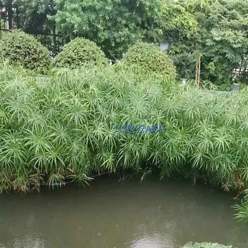 风车草常依水而生,植株茂密,丛生,茎杆秀雅挺拔,叶伞状,奇特优美。种植于溪流岸边,与假山、礁石搭配,四季常绿,风姿绰约,尽显安然娴静的自然美,是园林水体造景常用的观叶植物。