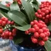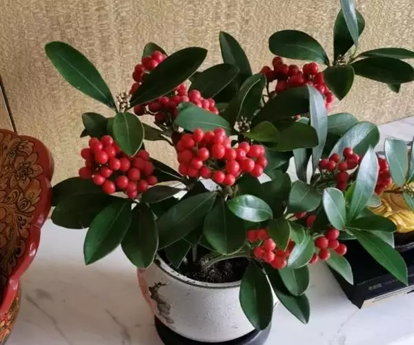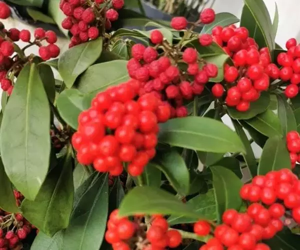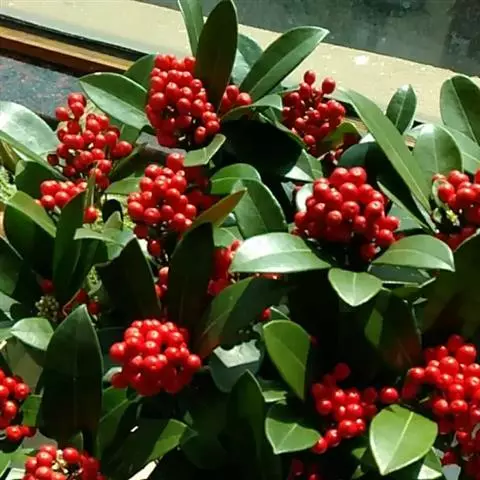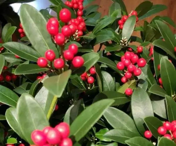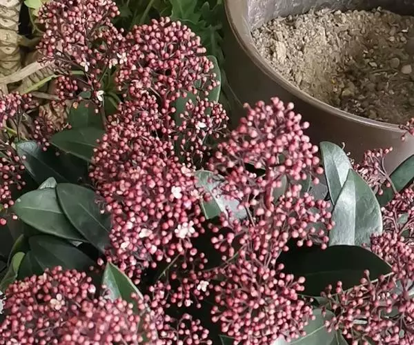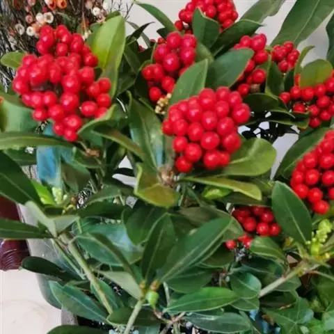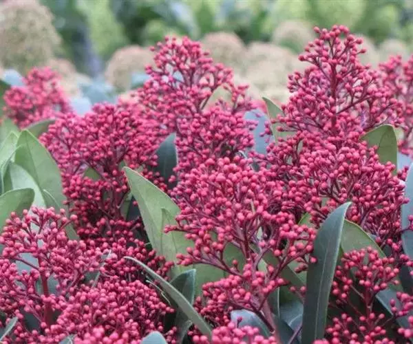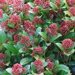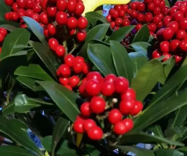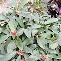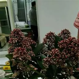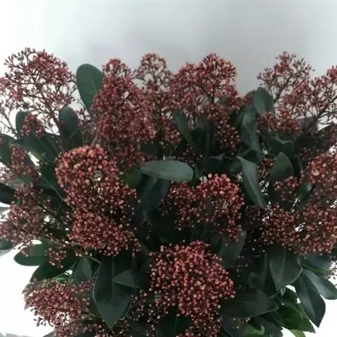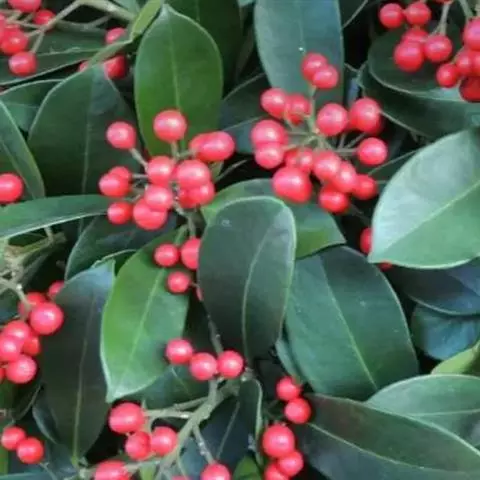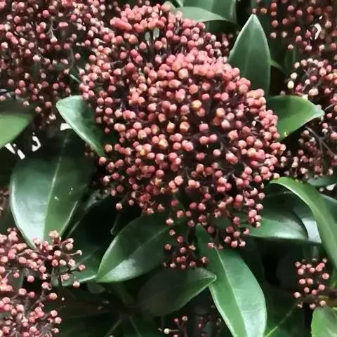 茵芋(Skimmia reevesiana (Fortune) Fortune),是芸香科茵芋属的灌木植物。茵芋小枝常中空,皮淡灰绿色,光滑;叶有柑橘叶的香气,革质,集生于枝上部,叶片椭圆形、披针形、卵形或倒披针形,端短钝尖,基部宽楔形;花序轴及花梗均被毛;花密集,芳香,淡黄白色,萼片半圆形,边缘被短毛,花瓣黄白色;果球形、椭圆形或倒卵形;种子扁卵形,具极小窝点;花期3-5月,果期9-11月。茵芋原产中国的喜马拉雅山区至日本一线都有分布,在中国东南沿海各省区,以及湖南、湖北、广西、贵州等省区也有栽培。茵芋喜温暖和阳光照射的环境,也稍耐阴,不耐寒;喜在深厚、肥沃、疏松透气、富含有机质的微酸性土壤中生长。茵芋一般采用播种和扦插的繁殖方式。茵芋的茎、叶可药用;性味辛、苦,温,有祛风除湿的功效。《本经》载:“主五脏邪气,心腹寒热,羸瘦如疟状,发作有时;诸关节风湿痹痛”。茵芋有一定的观赏价值;其繁茂