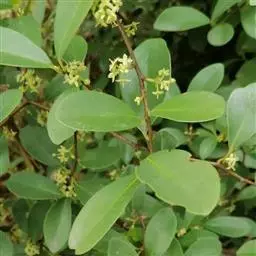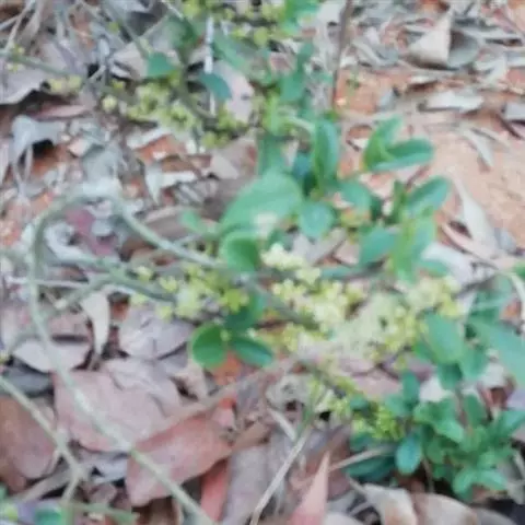 攀援灌木,分枝多;枝条无毛,密布皮孔,幼时多少被微柔毛。叶片坚纸质,稀革质,长圆状卵形或卵形,稀宽披针形,顶端急尖或渐尖,基部圆或钝,稀楔形,长5-10厘米,宽2-4厘米,边缘具细或粗锯齿,有时具重锯齿或几全缘,两面无毛,叶面中脉下凹,背面隆起,侧脉多数,直达齿尖,细脉网状,明显隆起,腺点疏而不明显;叶柄长6-8毫米,具狭翅,多少被微柔毛。总状花序,腋生,长1-2厘米,可达3厘米以上,被微柔毛;花梗长2-3 (-5) 毫米,被乳头状突起;小苞片钻形,长1毫米,里外均被乳头状突起;花5数,长1-2毫米,花萼基部连合,萼片卵形,顶端急尖,长0.7毫米,具缘毛,里外无毛,多少具腺点,有时于萼连合处被微柔毛;花瓣分离,淡绿色或白色,长1-2毫米,卵形或长圆形或椭圆形,顶端钝或圆形,边缘膜质,具缘毛,外面无毛,里面中央尤其是近基部密被微柔毛或乳头状突起,具腺点;雄蕊在雌花中退化,长达花瓣的1/2,在雄花中与花瓣等长或较长,着生于花瓣的1/3处,花丝基部具乳头状突起,花药长圆形或卵形,背部具腺点;雌蕊在雌花中与花瓣等长,子房瓶形或球形,花柱常弯曲,柱头细尖或略展开。果球形,直径4-5毫米,蓝黑色或带红色,具腺点,宿存萼紧贴果。花期10-12月,果期4-7月。