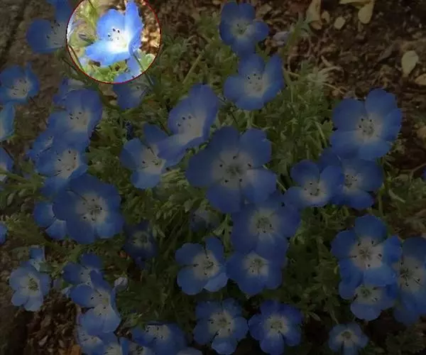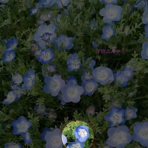 株高约30公分,清澄之紫蓝色花、中心白色。耐寒性强,即使下霜的地区也可越冬,适合盆钵、花坛栽植。在日本,粉蝶花对其国人已不陌生,且受当地人们普遍种植,论花色、论花型、论植株型态,都是非常好的盆栽植物。在台湾平地,因夏季气候炎热,生长势较差,以致开花会受影响。9~10月是最佳的播种期,翌年4~5月开花,发芽适温约15~22℃,生育温度5~28℃,比较适合在冷凉的天候下栽植。若想于春天播种,则在春末夏初天气渐渐炎热之际,将其置于遮荫且凉爽通风,有明亮光线的地方,注意浇水,避免过于干旱,那么也是可以在夏天看到她开花。