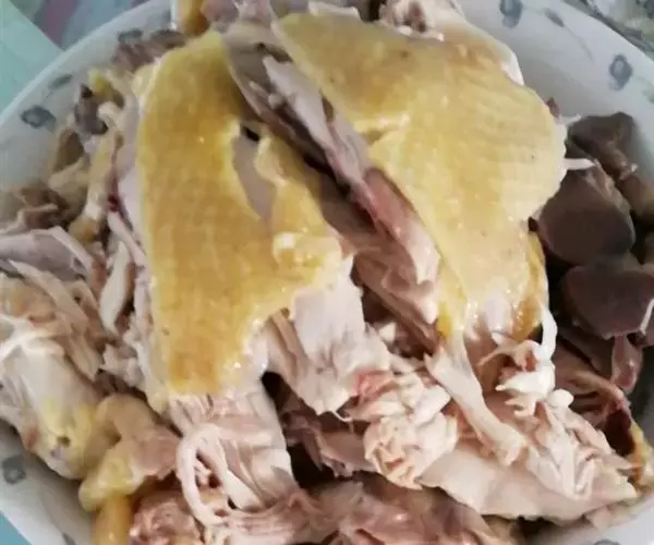 酒、味精、胡椒粉、醋、白糖和香油勾兑成汁,浇在鸡身上即成。