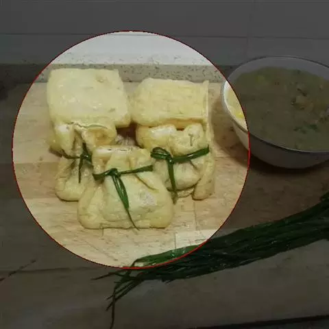 2.豆腐碾成泥,加入淀粉、玉兰片丝、木耳丝、花生油、精盐、味精、清汤,调拌均匀,制成馅料。