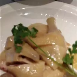 清人袁枚《随园食单》称之为白片鸡。他说:“鸡功最巨,诸菜赖之, 故令羽族之首,而以他禽附之,作羽族单。”单上列鸡菜数十款,用于蒸、炮、煨、卤、糟的都有,列以首位就是白片鸡,说它有"太羹元酒之味"。如今,粤菜厨坛中,鸡的菜式有200余款之多,而最为人常食不厌的却属白斩鸡,原汁原味,皮爽肉滑,大筵小席皆宜,逢年过节必备,深受食家及普通百姓青睐。