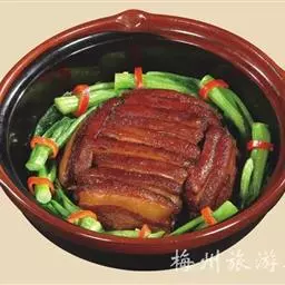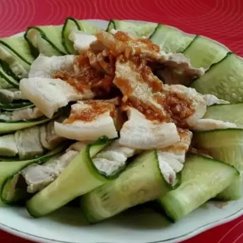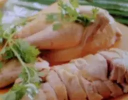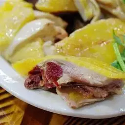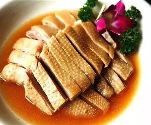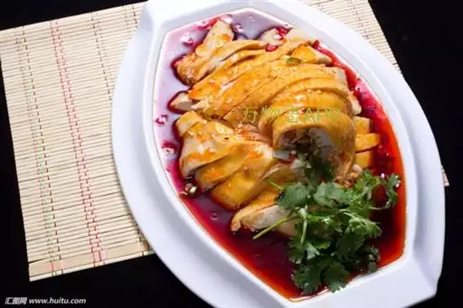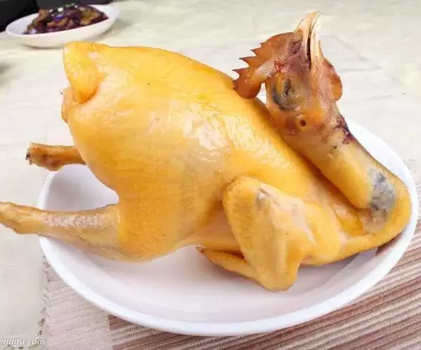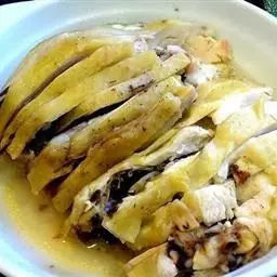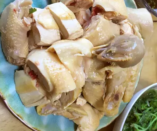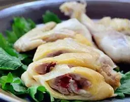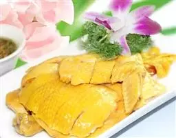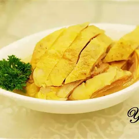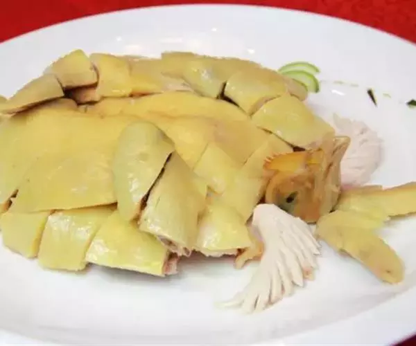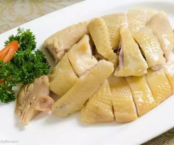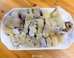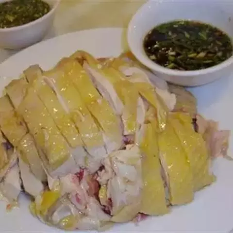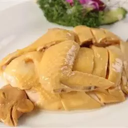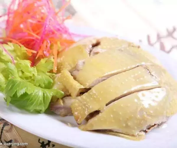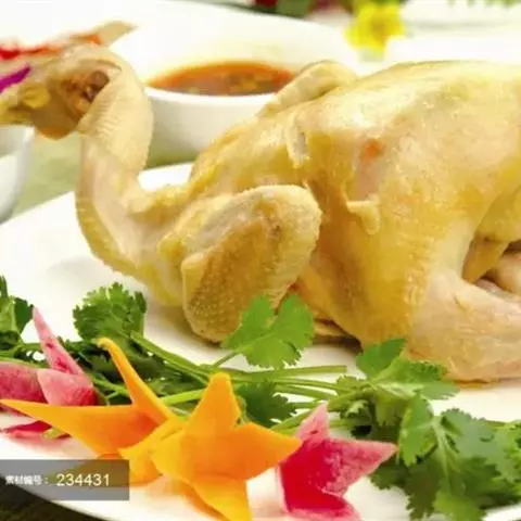 1. 白斩鸡又称白切鸡、三黄油鸡,是粤菜传统名菜,多作为宴席冷盘,供佐酒之用。白斩鸡始于清代的民间酒店,因烹鸡时不加调味白煮而成,食用时随吃随斩,故称“白斩鸡”。又因其用料,广东省清远市阳山县出品的三黄鸡(脚黄、皮黄、嘴黄),故又称三黄油鸡。后来广东各饭店和熟食店都经营“白斩鸡”,不仅用料精细,而且还用熬熟的“虾子酱油”同鸡一起上桌蘸食。此菜色泽金黄,皮脆肉嫩,滋味异常鲜美,久吃不厌 。