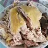 6 待鸡冷却后,将鸡捞出,控去汤汁,在鸡的周身涂上芝麻油;