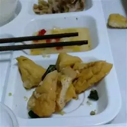 1.将豆腐切成小块,用沸水焯烫,捞出控干水分,晾凉。玉兰片、木耳