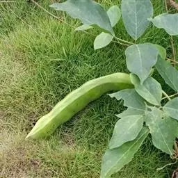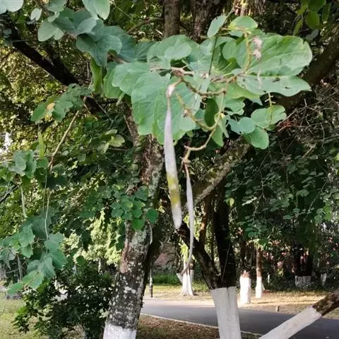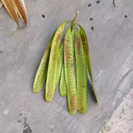 荚果带状,长10-18厘米,宽1.4-3厘米,顶端凸尖,基部有柄,纵裂,被微柔毛;种子6-25颗,卵形,长约7.5毫米,褐色,扁平,光亮。花期4-7月;果期8-10月。