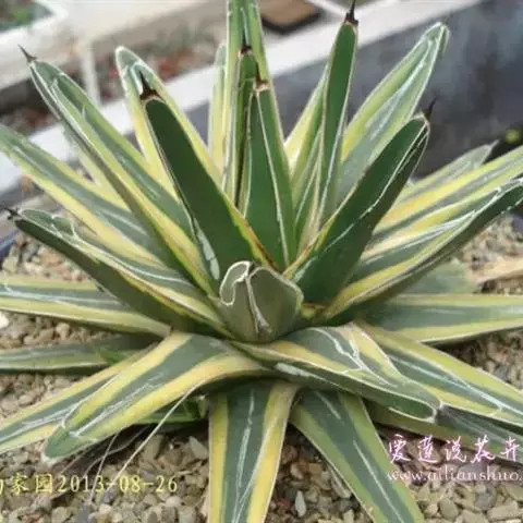 金边龙舌兰是天门冬科龙舌兰属多年生常绿草本植物。叶丛生边缘有黄白色条带镶边,…