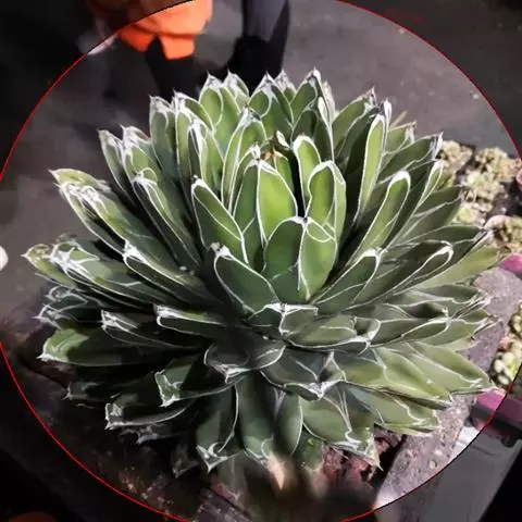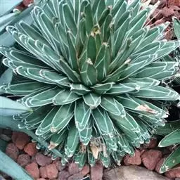皇后龙舌兰是天门冬科、龙舌兰属多年生草本多浆植物。无主茎,叶丛生,莲座状,株幅40厘米。叶较多,…