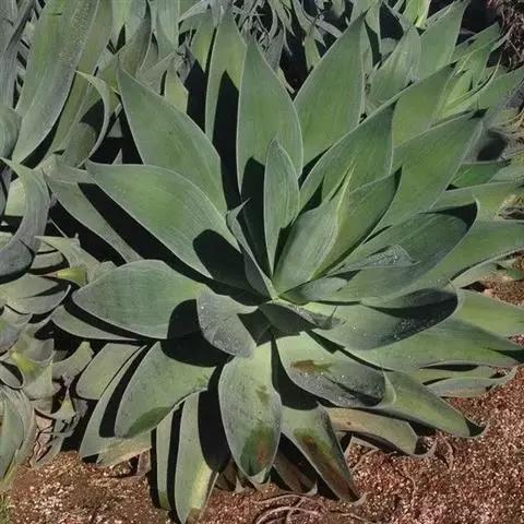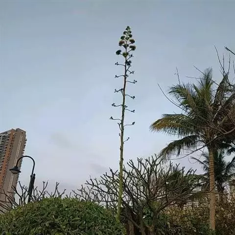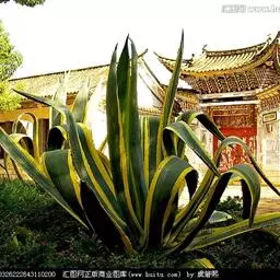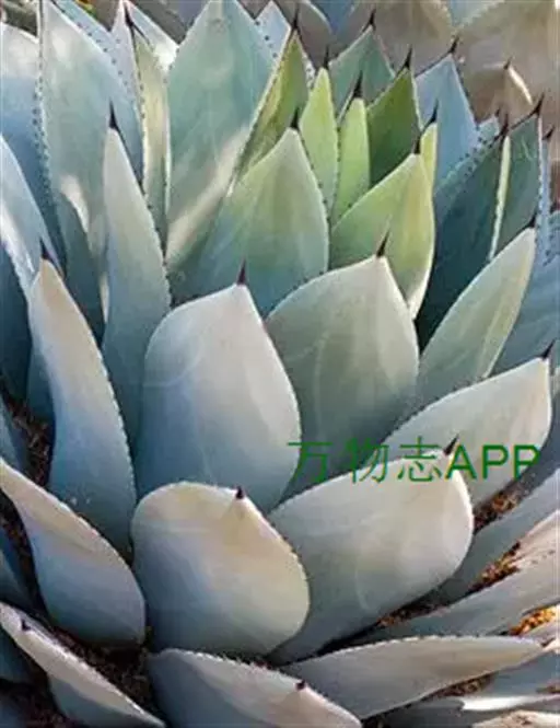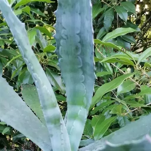 龙舌兰(Agave americana L.)是石蒜科、龙舌兰属多年生常绿大型草本植物。 叶呈莲座式排列,大型,肉质,倒披针状线形,中部宽15-20厘米,基部宽10-12厘米,叶缘具有疏刺,顶端有1硬尖刺,刺暗褐色。圆锥花序大型,长达12米,多分枝;花黄绿色;雄蕊长约为花被的2倍。蒴果长圆形。开花后花序上生成的珠芽极少。