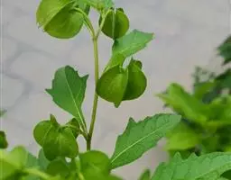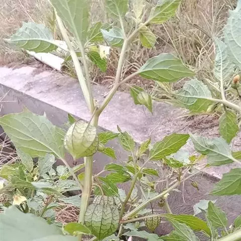 1、酸浆又名:欧亚酸浆。多年生草本,基部常匍匐生根。茎高约40-80cm,基部略带木质。叶互生,常2枚生于一节;叶柄长约1-3cm;叶片长卵形至阔卵形,长5-15cm,宽2-8cm,先端渐尖,基部不对称狭楔形,下延至叶柄,全缘而波状或有粗芽齿,两面具柔毛,沿叶脉亦有短硬毛。花单生于叶腋,花梗长6-16mm,开花时直立,后来向下弯曲,密生柔毛而果时也不脱落;花萼阔钟状,密生柔毛,5裂,萼齿三角形,花后萼筒膨大,变为橙红或深红色,呈灯笼状包被将果;花冠辐状,白色,5裂,裂片开展,阔而短,先端骤然狭包被浆果;花冠辐状,白色,5裂,裂片开展,阔而短,先端骤然狭窄成三角形尖头,外有短柔毛;雄蕊5,花药淡黄绿色;子房上位,卵球形,2室。浆果球状,橙红色,直径10-15mm,柔软多汁。种子肾形,淡黄色。花期5-9月,果期6-10月。