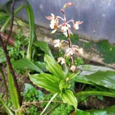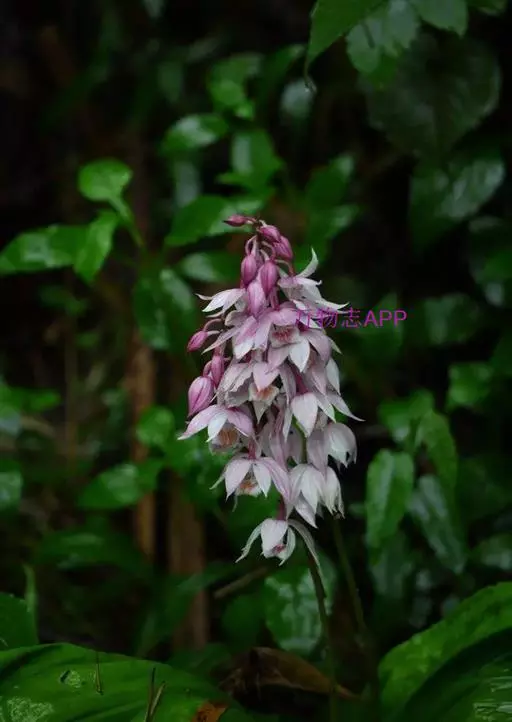 无距虾脊兰:假鳞茎近圆锥形,粗约1厘米,具3-4枚鞘和2-3枚叶。叶在花期尚未完全展开,…